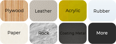 Diode Laser: Paper, Wood, Leather, MDF, Stainless Steel, Some Dark Opaque Acrylic, Bamboo, Fabric, Dark Glass and Ceramic, Jade, Marble, Shale, Cement, Brick, Plated Metal, Painted Metal